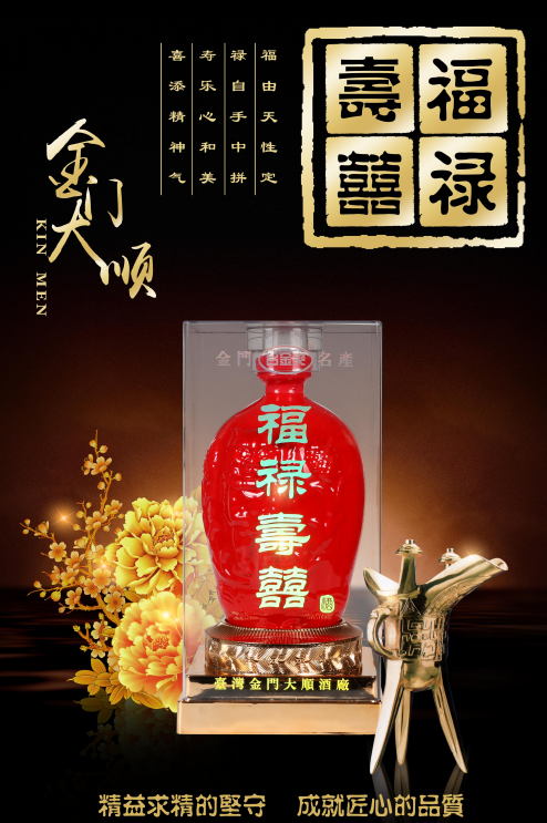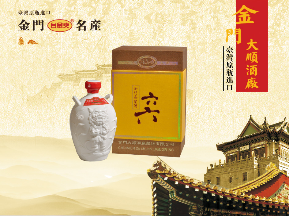 金門大順酒廠股份有限公司 為臺灣金門第一家合法民營酒類制造業(yè)者,多年來以生產好酒為宗旨,秉持傳統古法釀造技術,廣受消費者好評。